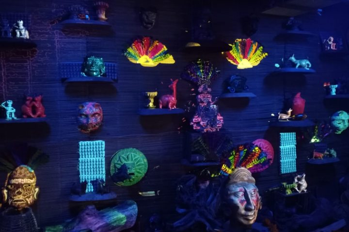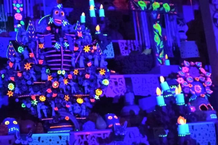 We take immense pride in showcasing our unique art collection which includes handmade art pieces from renowned master artists in Mexico and art pieces that are no longer in production. The permanent exhibit is an immersive sensory experience, complete with pre-Columbian music and light effects, that take visitors on a journey through the tradition's intricate history through several rooms. The exhibit culminates in our grand gallery which has 13 detailed ofrendas, or altars, dedicated to different individuals and a Mexico Experience video which shows sites and sounds of Mexico beyond Dia de Muertos.